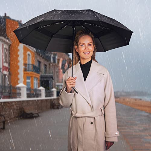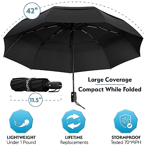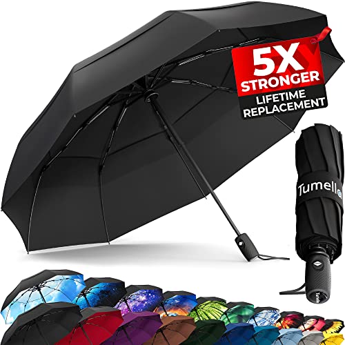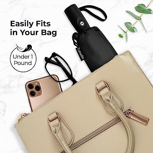 TUMELLA Strongest Windproof Travel Umbrella (Compact, Superior & Beautiful), Small Strong but Light Portable and Automatic Folding Rain Umbrella, Durable Premium Grip, Fits Car & Backpack